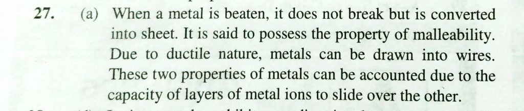 Malleablity and ductility of metals can be accounted due to (a) The capacity of layers of metal ions to slide over the other (b) The interaction of electrons with metal ions in the order (c) The presence of electrostatic force (d) The crystalline structure in metal