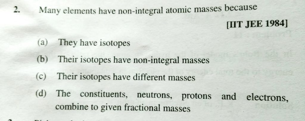 Many element have non – integral atomic masses because (a) They have isotopes (b) THeir isotopes have non – integral masses (c) THeir isotopes have different masses Many element have non - integral atomic masses because (a) They have isotopes (b) THeir isotopes have non - integral masses (c) THeir isotopes have different masses December 1, 2020 Category: Uncategorised (JEE Advanced Physics by BM Sharma + GMP Solutions) , Facebook Messenger WhatsApp Share this:TwitterFacebook Related
