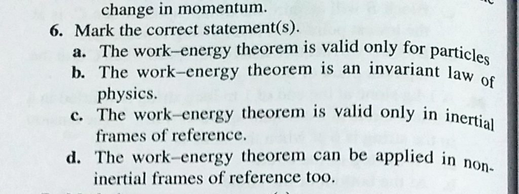 Mark the correct statement(s). a. The work-energy theorem is valid only for particles b. The work-energy theorem is an invariant law of physics. Mark the correct statement(s). a. The work-energy theorem is valid only for particles b. The work-energy theorem is an invariant law of physics. October 4, 2020 Category: Uncategorised (JEE Advanced Physics by BM Sharma + GMP Solutions) , Facebook Messenger WhatsApp Share this:TwitterFacebook Related