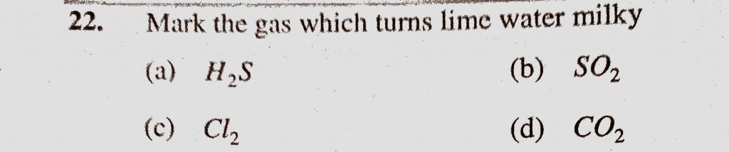 Mark the gas which turns lime water milky (a) H2S (b) SO2 (c) Cl2 (d) CO2 Mark the gas which turns lime water milky (a) H2S (b) SO2 (c) Cl2 (d) CO2 December 6, 2020 Category: Uncategorised (JEE Advanced Physics by BM Sharma + GMP Solutions) , Facebook Messenger WhatsApp Share this:TwitterFacebook Related
