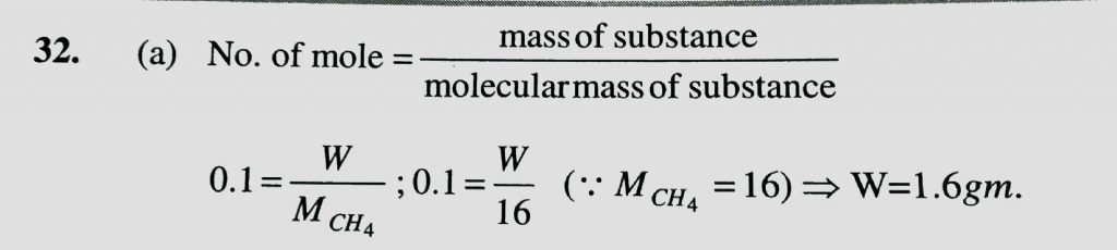 Mass of 0.1 mole of methane is (a) 1.6 g (b) 0.1 g (c) 1 g (d) 16 g Mass of 0.1 mole of methane is (a) 1.6 g (b) 0.1 g (c) 1 g (d) 16 g November 22, 2020 Category: Uncategorised (JEE Advanced Physics by BM Sharma + GMP Solutions) , Facebook Messenger WhatsApp Share this:TwitterFacebook Related