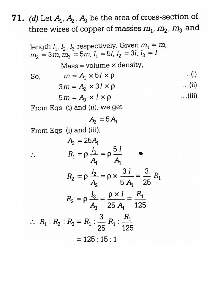 Masses of three wires of copper are in the ratio of 1:3:5 and their lengths are in the ratio of 5:3:1. The ratio of their electrical resistances is. Masses of three wires of copper are in the ratio of 1:3:5 and their lengths are in the ratio of 5:3:1. The ratio of their electrical resistances is. December 7, 2020 Category: Uncategorised (JEE Advanced Physics by BM Sharma + GMP Solutions) , Facebook Messenger WhatsApp Share this:TwitterFacebook Related