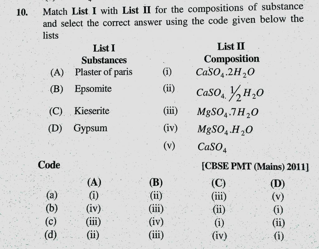 Match List 1 with List 2 for the composition of substance and select the correct answer using the code given below the lists Match List 1 with List 2 for the composition of substance and select the correct answer using the code given below the lists November 15, 2020 Category: Uncategorised (JEE Advanced Physics by BM Sharma + GMP Solutions) , Facebook Messenger WhatsApp Share this:TwitterFacebook Related