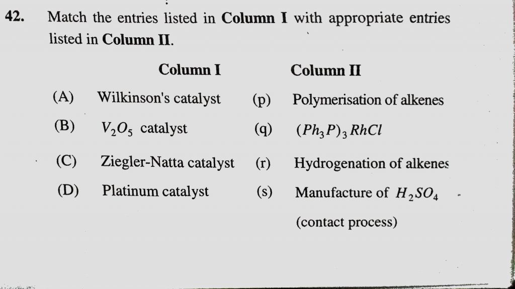 Match the entries listed in Column 1 with appropriate entries listed in Column 2 (A ) Wilkinson’s catalyst Match the entries listed in Column 1 with appropriate entries listed in Column 2 (A ) Wilkinson's catalyst December 3, 2020 Category: Uncategorised (JEE Advanced Physics by BM Sharma + GMP Solutions) , Facebook Messenger WhatsApp Share this:TwitterFacebook Related