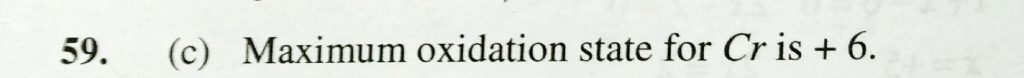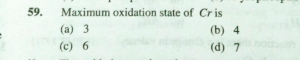 Maximum oxidation state of Cr is (a) 3 (b) 4 (c) 6 (d) 7 Maximum oxidation state of Cr is (a) 3 (b) 4 (c) 6 (d) 7 November 24, 2020 Category: Uncategorised (JEE Advanced Physics by BM Sharma + GMP Solutions) , Facebook Messenger WhatsApp Share this:TwitterFacebook Related
