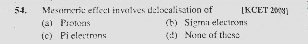Mesomeric effect involves delocalisation of (a) Protons (b) Sigma electrons (c) Pi electrons (d) None of these Mesomeric effect involves delocalisation of (a) Protons (b) Sigma electrons (c) Pi electrons (d) None of these December 9, 2020 Category: Uncategorised (JEE Advanced Physics by BM Sharma + GMP Solutions) , Facebook Messenger WhatsApp Share this:TwitterFacebook Related