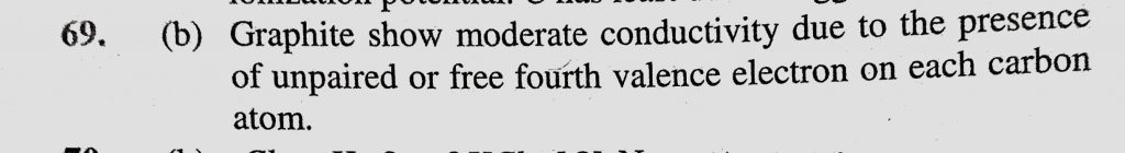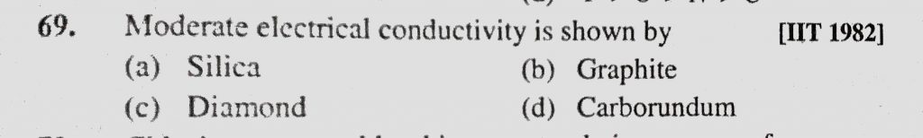 Moderate electrical conductivity is shown by (a) Silica (b) Graphite (c) Diamond (d) Carborundum Moderate electrical conductivity is shown by (a) Silica (b) Graphite (c) Diamond (d) Carborundum November 27, 2020 Category: Uncategorised (JEE Advanced Physics by BM Sharma + GMP Solutions) , Facebook Messenger WhatsApp Share this:TwitterFacebook Related