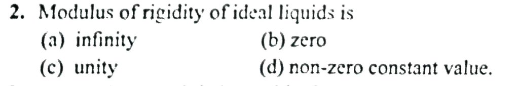 Modulus of rigidity of liquids is (a) infinity (b) zero (c) unity (d) non- zero constant value. Modulus of rigidity of liquids is (a) infinity (b) zero (c) unity (d) non- zero constant value. October 9, 2020 Category: Uncategorised (JEE Advanced Physics by BM Sharma + GMP Solutions) , Facebook Messenger WhatsApp Share this:TwitterFacebook Related