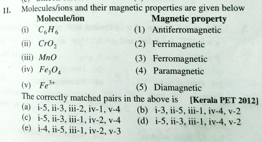 Molecules/ ions and their magnetic properties are given below The correctly matched pairs in the above is Molecules/ ions and their magnetic properties are given below The correctly matched pairs in the above is December 16, 2020 Category: Uncategorised (JEE Advanced Physics by BM Sharma + GMP Solutions) , Facebook Messenger WhatsApp Share this:TwitterFacebook Related