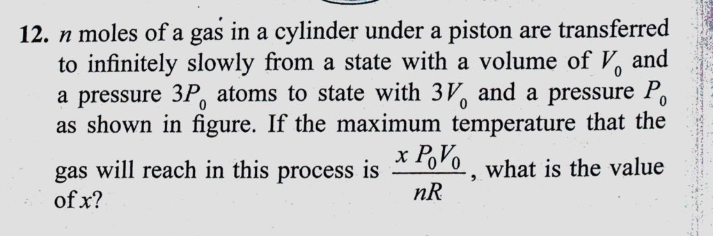 n moles of a gas in a cylinder under a piston are transferred to infinitely slowly from a state with a volume of V0 and a pressure 3P0 atoms to state with 3V0 and a pressure P0 as shown n moles of a gas in a cylinder under a piston are transferred to infinitely slowly from a state with a volume of V0 and a pressure 3P0 atoms to state with 3V0 and a pressure P0 as shown October 28, 2020 Category: Uncategorised (JEE Advanced Physics by BM Sharma + GMP Solutions) , Facebook Messenger WhatsApp Share this:TwitterFacebook Related