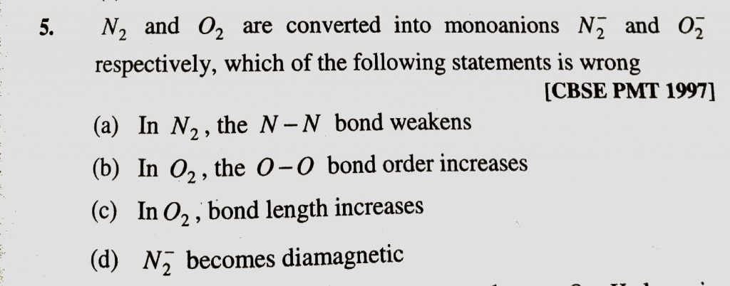 N2 and O2 are converted into monoanions N2^- and O2 ^- respectively , which of the following statement is wrong N2 and O2 are converted into monoanions N2^- and O2 ^- respectively which of the following statement is wrong ? December 7, 2020 Category: Uncategorised (JEE Advanced Physics by BM Sharma + GMP Solutions) , Facebook Messenger WhatsApp Share this:TwitterFacebook Related
