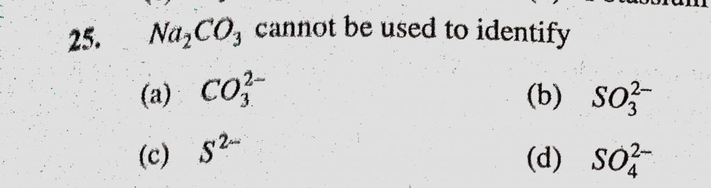Na2CO3 cannot be used to identify (a) CO3 2- (b) SO3 2- (c) S 2- (d) SO4 2- Na2CO3 cannot be used to identify (a) CO3 2- (b) SO3 2- (c) S 2- (d) SO4 2- December 6, 2020 Category: Uncategorised (JEE Advanced Physics by BM Sharma + GMP Solutions) , Facebook Messenger WhatsApp Share this:TwitterFacebook Related