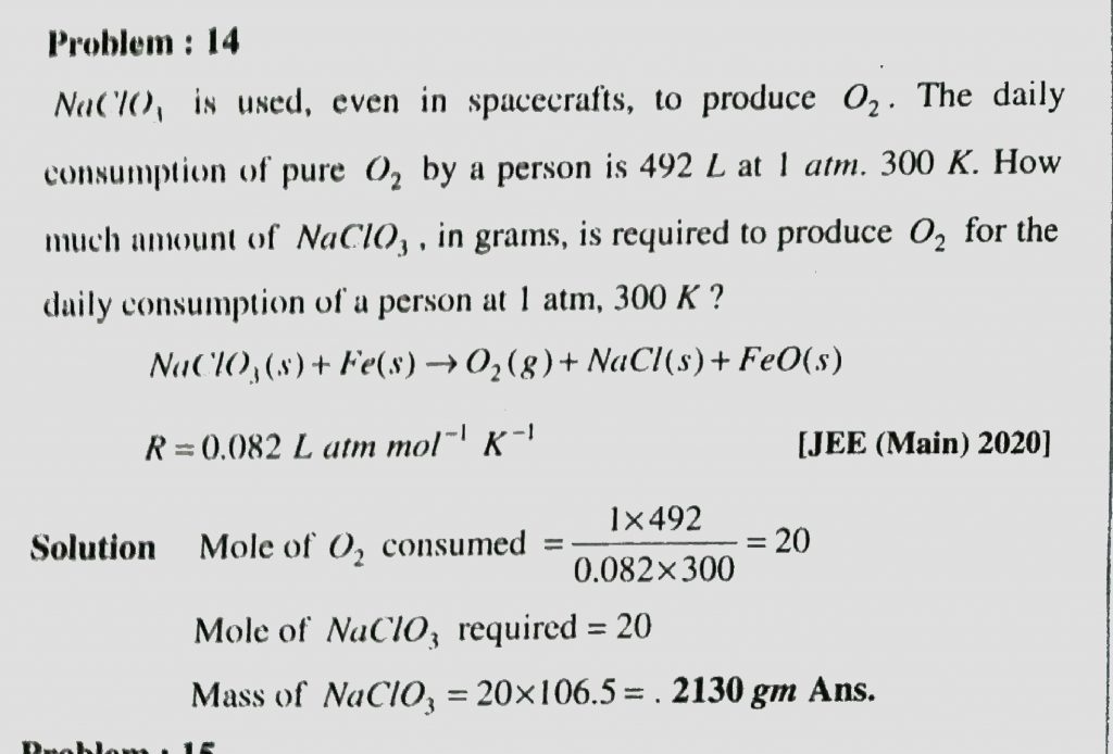 NaClO3 is used even in spacecrafts , to produce O2. The daily consumption of pure O2 by a person is 493 L at 1 atm . 300K . How much amount of NaCLO3 , in grams ,is required to produce O2 for the daily consumption of a person at 1 atmm, 300 K ? 300 K ? in grams is required to produce O2 for the daily consumption of a person at 1 atmm NaClO3 is used even in spacecrafts to produce O2. The daily consumption of pure O2 by a person is 493 L at 1 atm . 300K . How much amount of NaCLO3 November 25, 2020 Category: Uncategorised (JEE Advanced Physics by BM Sharma + GMP Solutions) , Facebook Messenger WhatsApp Share this:TwitterFacebook Related