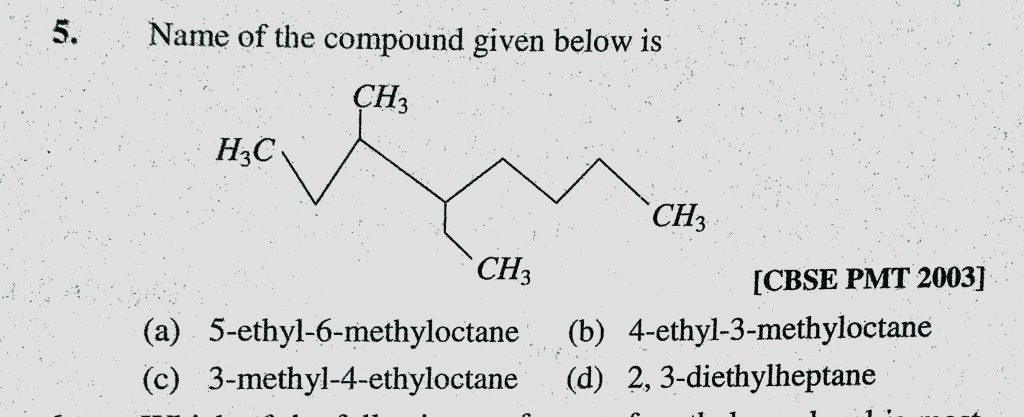 Name of the compound given below is (a) 5-ethyl-6-methyloctane (b) 4-ethyl-3-methyloctane (c) 3-methyl-4-ethyloctane Name of the compound given below is (a) 5-ethyl-6-methyloctane (b) 4-ethyl-3-methyloctane (c) 3-methyl-4-ethyloctane December 11, 2020 Category: Uncategorised (JEE Advanced Physics by BM Sharma + GMP Solutions) , Facebook Messenger WhatsApp Share this:TwitterFacebook Related
