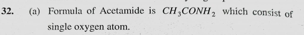 Number of oxygen atoms in an actamide molecule is (a) 1 (b) 2 (c) 3 (d) 4 Number of oxygen atoms in an actamide molecule is (a) 1 (b) 2 (c) 3 (d) 4 February 12, 2021 Category: Uncategorised (JEE Advanced Physics by BM Sharma + GMP Solutions) , Facebook Messenger WhatsApp Share this:TwitterFacebook Related