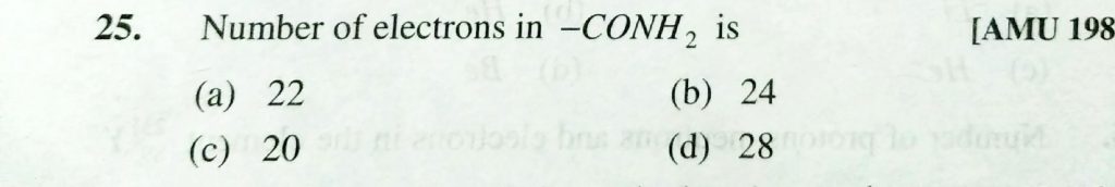 Number of electrons in – CONH2 is (a) 22 (b) 24 (c) 20 (d) 28 Number of electrons in - CONH2 is (a) 22 (b) 24 (c) 20 (d) 28 November 26, 2020 Category: Uncategorised (JEE Advanced Physics by BM Sharma + GMP Solutions) , Facebook Messenger WhatsApp Share this:TwitterFacebook Related