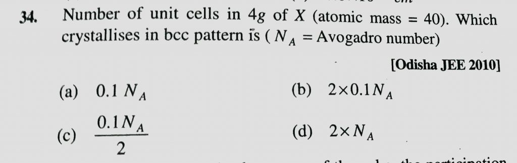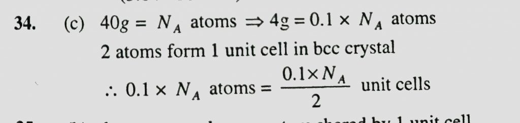 Number of unit cells in 4g of X ( atomic mass = 40 ). which crystallises in bcc pattern is ( Na = Avogadro number ) Number of unit cells in 4g of X ( atomic mass = 40 ). which crystallises in bcc pattern is ( Na = Avogadro number ) December 17, 2020 Category: Uncategorised (JEE Advanced Physics by BM Sharma + GMP Solutions) , Facebook Messenger WhatsApp Share this:TwitterFacebook Related