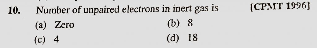 Number of unpaired electrons in intert gas is (a) zero (b) 4 (c) 4 (d) 18 Number of unpaired electrons in intert gas is (a) zero (b) 4 (c) 4 (d) 18 November 26, 2020 Category: Uncategorised (JEE Advanced Physics by BM Sharma + GMP Solutions) , Facebook Messenger WhatsApp Share this:TwitterFacebook Related