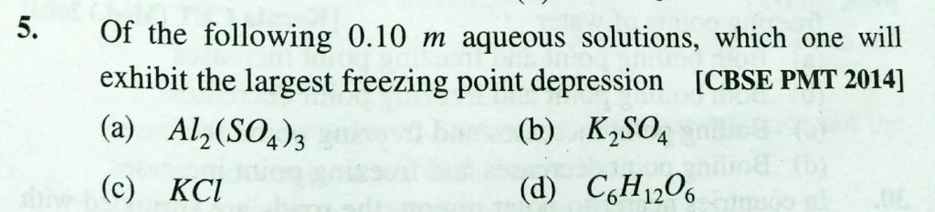 Of the following 0.01 m aqueous solutions, which one will exhibit the largest freezing point depression Of the following 0.01 m aqueous solutions which one will exhibit the largest freezing point depression December 14, 2020 Category: Uncategorised (JEE Advanced Physics by BM Sharma + GMP Solutions) , Facebook Messenger WhatsApp Share this:TwitterFacebook Related