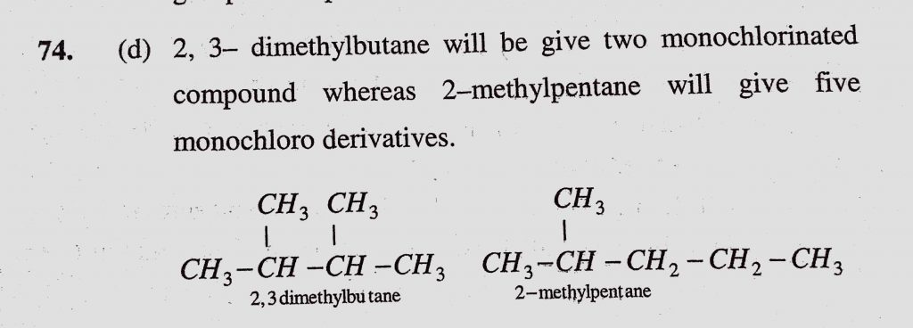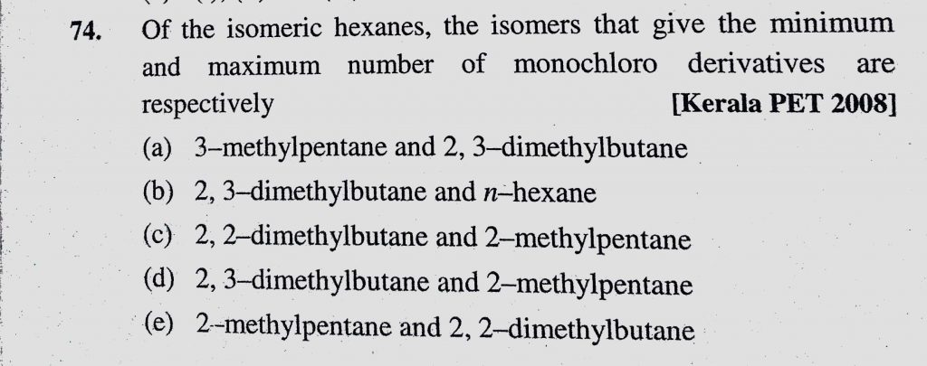 Of the isomeric hexanes, the isomers that give the minimum and maximum number of monochloro derivatives are respectively (a) 3-methylpentane and 2,3-dimethylbutane 3-dimethylbutane Of the isomeric hexanes the isomers that give the minimum and maximum number of monochloro derivatives are respectively (a) 3-methylpentane and 2 December 10, 2020 Category: Uncategorised (JEE Advanced Physics by BM Sharma + GMP Solutions) , Facebook Messenger WhatsApp Share this:TwitterFacebook Related