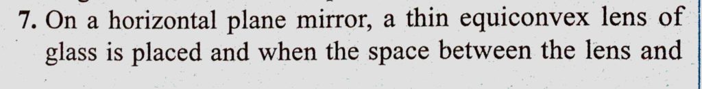On a horizontal plane mirror, a thin equiconvex lens of glass is placed and when the space between the lens and mirror is filled with a liquid, an object held at a distance D which is 30 cm vertically above the lens is found to a thin equiconvex lens of glass is placed and when the space between the lens and mirror is filled with a liquid an object held at a distance D which is 30 cm vertically above the lens is found to On a horizontal plane mirror October 8, 2020 Category: Uncategorised (JEE Advanced Physics by BM Sharma + GMP Solutions) , Facebook Messenger WhatsApp Share this:TwitterFacebook Related