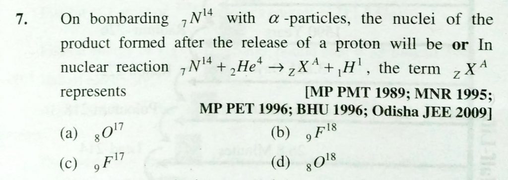 On bombarding 7N^14 with alpha particles , the nuclie of the product formed after the release of a proton will be or In nuclear reaction 7N^14 + 2He ^4 gives zX^A + 1H^1 , teh term zX^A represents On bombarding 7N^14 with alpha particles teh term zX^A represents the nuclie of the product formed after the release of a proton will be or In nuclear reaction 7N^14 + 2He ^4 gives zX^A + 1H^1 February 13, 2021 Category: Uncategorised (JEE Advanced Physics by BM Sharma + GMP Solutions) , Facebook Messenger WhatsApp Share this:TwitterFacebook Related