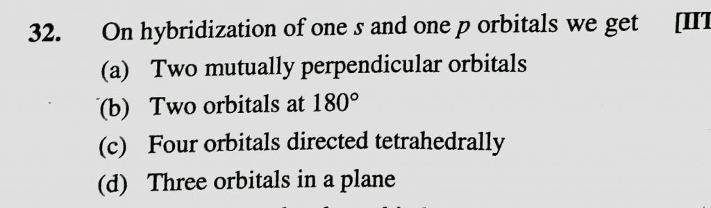 On hybridization of one s and one p orbitals we get (a) Two mutually perpendicular orbitals (b) Two orbitals at 180 degree On hybridization of one s and one p orbitals we get (a) Two mutually perpendicular orbitals (b) Two orbitals at 180 degree December 9, 2020 Category: Uncategorised (JEE Advanced Physics by BM Sharma + GMP Solutions) , Facebook Messenger WhatsApp Share this:TwitterFacebook Related