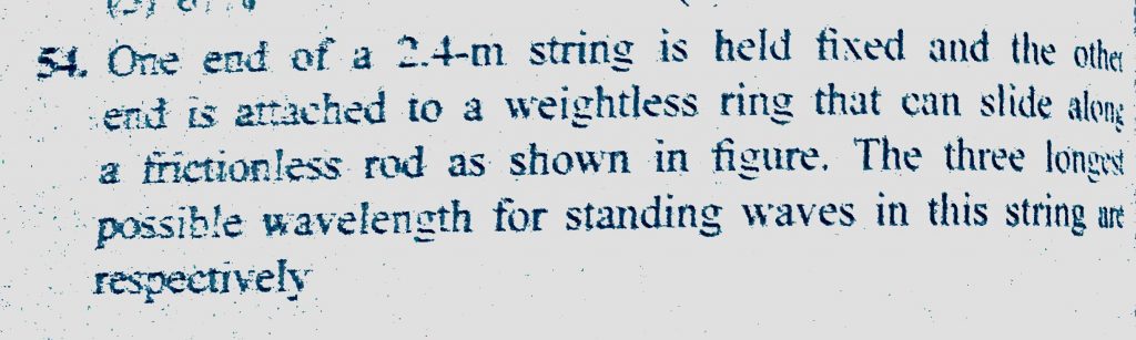 One end of a 2.4 m string is held fixed and the other end is attached to a weightless ring that can slide along a frictionless rod as shown in figure. The three longest possible wavelength One end of a 2.4 m string is held fixed and the other end is attached to a weightless ring that can slide along a frictionless rod as shown in figure. The three longest possible wavelength November 6, 2020 Category: Uncategorised (JEE Advanced Physics by BM Sharma + GMP Solutions) , Facebook Messenger WhatsApp Share this:TwitterFacebook Related