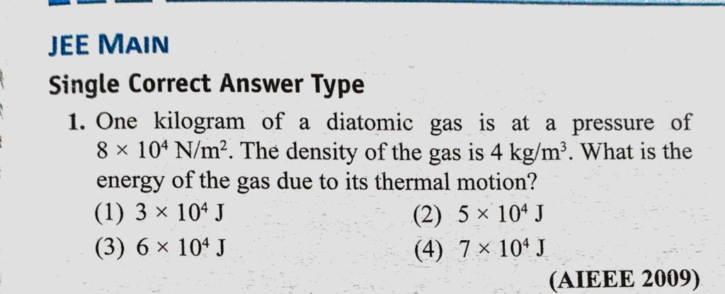 One kilogram of a diatomic gas is at a pressure of 8 * 10^4 N/m^2. The density of the gas is 4 kg /m^3. What is the energy of the gas due to its thermal motion ? One kilogram of a diatomic gas is at a pressure of 8 * 10^4 N/m^2. The density of the gas is 4 kg /m^3. What is the energy of the gas due to its thermal motion ? October 28, 2020 Category: Uncategorised (JEE Advanced Physics by BM Sharma + GMP Solutions) , Facebook Messenger WhatsApp Share this:TwitterFacebook Related