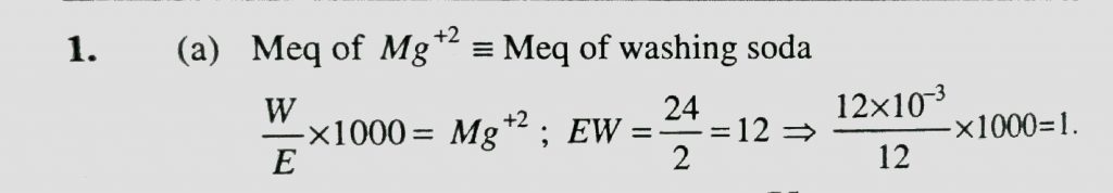 One litre hard water contains 12 mg Mg^2+ milli equivalent of washing soda required to remove its hardness is One litre hard water contains 12 mg Mg^2+ milli equivalent of washing soda required to remove its hardness is November 24, 2020 Category: Uncategorised (JEE Advanced Physics by BM Sharma + GMP Solutions) , Facebook Messenger WhatsApp Share this:TwitterFacebook Related