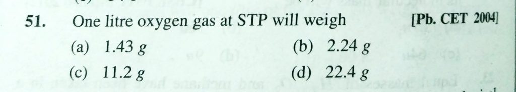 One litre oxygen gas at STP will length (a) 1.43 g (b) 2.24 g (c) 11.2 g (d) 22.4 g One litre oxygen gas at STP will length (a) 1.43 g (b) 2.24 g (c) 11.2 g (d) 22.4 g February 10, 2021 Category: Uncategorised (JEE Advanced Physics by BM Sharma + GMP Solutions) , Facebook Messenger WhatsApp Share this:TwitterFacebook Related