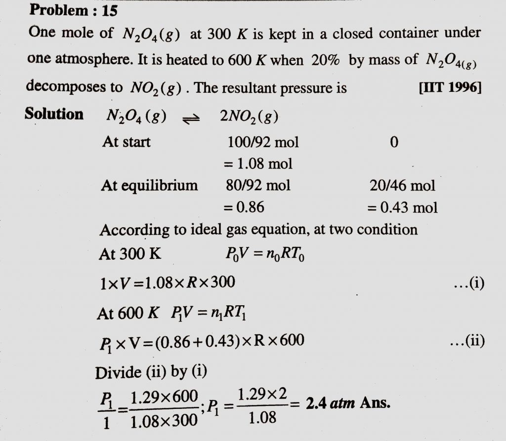 One moel of N2O4 (g) at 300 K is kept in a closed container under one atmosphere . It is heated to 600 K when 20 % by mass of N2O4 (g) decomposes to N2O (g) . The resultant pressure is One moel of N2O4 (g) at 300 K is kept in a closed container under one atmosphere . It is heated to 600 K when 20 % by mass of N2O4 (g) decomposes to N2O (g) . The resultant pressure is February 12, 2021 Category: Uncategorised (JEE Advanced Physics by BM Sharma + GMP Solutions) , Facebook Messenger WhatsApp Share this:TwitterFacebook Related