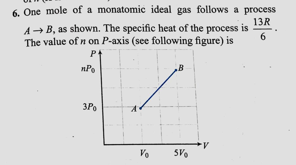 One mole of a monatomic ideal gas follows a process A to B, as shown. The specific heat of the process is 13R/6. The value of n on P-axis (see following figure) is as shown. The specific heat of the process is 13R/6. The value of n on P-axis (see following figure) is One mole of a monatomic ideal gas follows a process A to B October 29, 2020 Category: Uncategorised (JEE Advanced Physics by BM Sharma + GMP Solutions) , Facebook Messenger WhatsApp Share this:TwitterFacebook Related