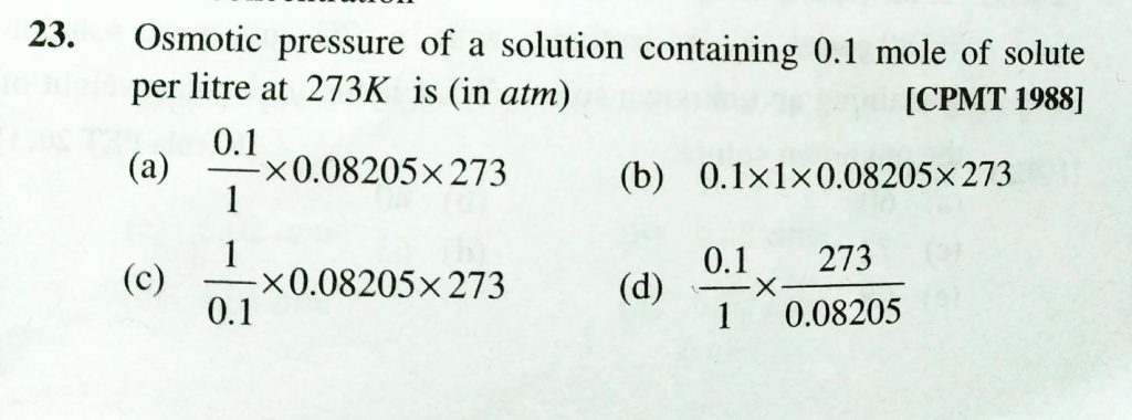 Osmotic pressure of a solution containing 0.1 mole of solute per litre at 273 K is ( in atm ) Osmotic pressure of a solution containing 0.1 mole of solute per litre at 273 K is ( in atm ) December 13, 2020 Category: Uncategorised (JEE Advanced Physics by BM Sharma + GMP Solutions) , Facebook Messenger WhatsApp Share this:TwitterFacebook Related