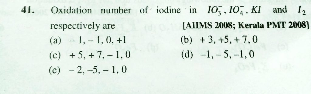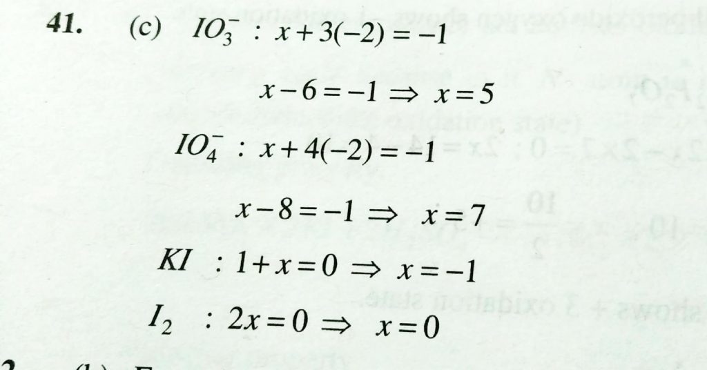 Oxidation number of iodine in IO3^- , IO4^- , KI and I2 respectively are IO4^- KI and I2 respectively are Oxidation number of iodine in IO3^- November 24, 2020 Category: Uncategorised (JEE Advanced Physics by BM Sharma + GMP Solutions) , Facebook Messenger WhatsApp Share this:TwitterFacebook Related