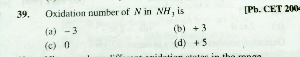 Oxidation number of N in NH3 is (a) -3 ( b) +3 (c) 0 (d) +5 Oxidation number of N in NH3 is (a) -3 ( b) +3 (c) 0 (d) +5 November 24, 2020 Category: Uncategorised (JEE Advanced Physics by BM Sharma + GMP Solutions) , Facebook Messenger WhatsApp Share this:TwitterFacebook Related