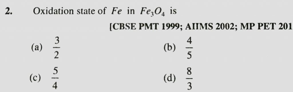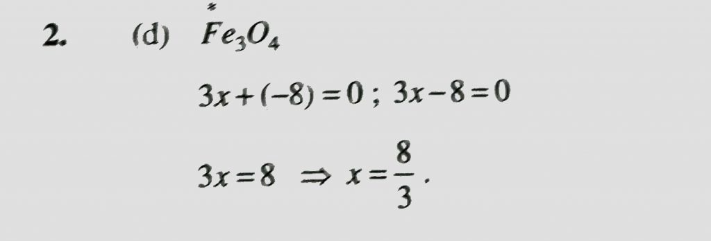 Oxidation state of Fe in Fe3O4 is (a) 3/2 (b) 4/5 (c) 5/4 (d) 8/3 Oxidation state of Fe in Fe3O4 is (a) 3/2 (b) 4/5 (c) 5/4 (d) 8/3 November 23, 2020 Category: Uncategorised (JEE Advanced Physics by BM Sharma + GMP Solutions) , Facebook Messenger WhatsApp Share this:TwitterFacebook Related