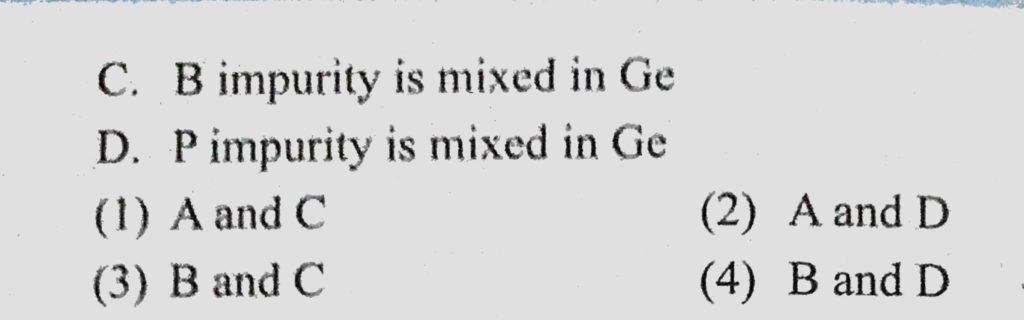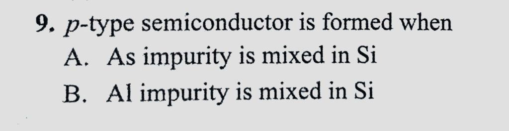 P-type semiconductor is formed when A. As impurity is mixed in Si B. A1 impurity is mixed in Si c. B impurity is mixed in Ge P-type semiconductor is formed when A. As impurity is mixed in Si B. A1 impurity is mixed in Si c. B impurity is mixed in Ge October 21, 2020 Category: Uncategorised (JEE Advanced Physics by BM Sharma + GMP Solutions) , Facebook Messenger WhatsApp Share this:TwitterFacebook Related