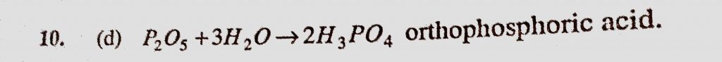 P2O5 is heated with water to give (a) Hypophosphorus acid (b) Orthophosphorus acid (c) Hypophosphoric acid (d) Orthophosphoric acid P2O5 is heated with water to give (a) Hypophosphorus acid (b) Orthophosphorus acid (c) Hypophosphoric acid (d) Orthophosphoric acid November 18, 2020 Category: Uncategorised (JEE Advanced Physics by BM Sharma + GMP Solutions) , Facebook Messenger WhatsApp Share this:TwitterFacebook Related
