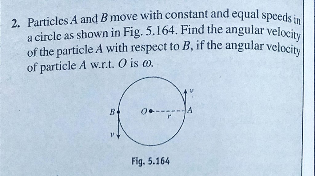 Particles A and B move with constant and equal speeds in a circle as shown in Fig. 5. 164. Find the angular velocity of the particle A with respect to B, if the angular velocity of particle A w.r.t. O is omega. if the angular velocity of particle A w.r.t. O is omega. Paricles A and B move with constant and equal speeds in a circle as shown in Fig. 5. 164. Find the angular velocity of the particle A with respect to B September 21, 2020 Category: Uncategorised (JEE Advanced Physics by BM Sharma + GMP Solutions) , Facebook Messenger WhatsApp Share this:TwitterFacebook Related