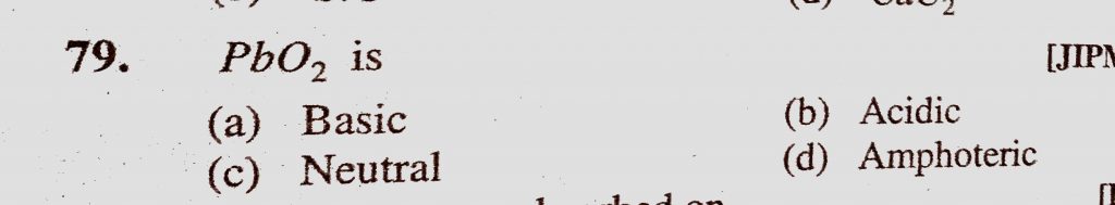 PbO2 is (a) Basic (b) Acidic (c) Neutral (d) amphoteric PbO2 is (a) Basic (b) Acidic (c) Neutral (d) amphoteric November 17, 2020 Category: Uncategorised (JEE Advanced Physics by BM Sharma + GMP Solutions) , Facebook Messenger WhatsApp Share this:TwitterFacebook Related