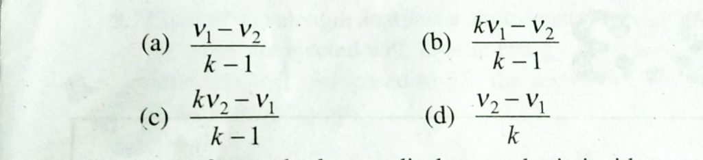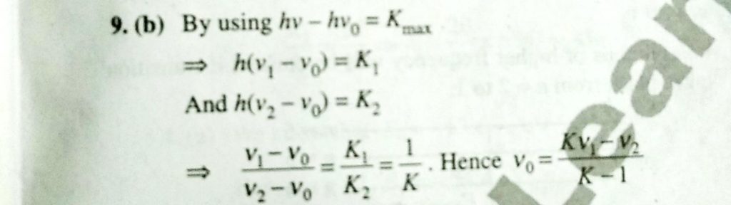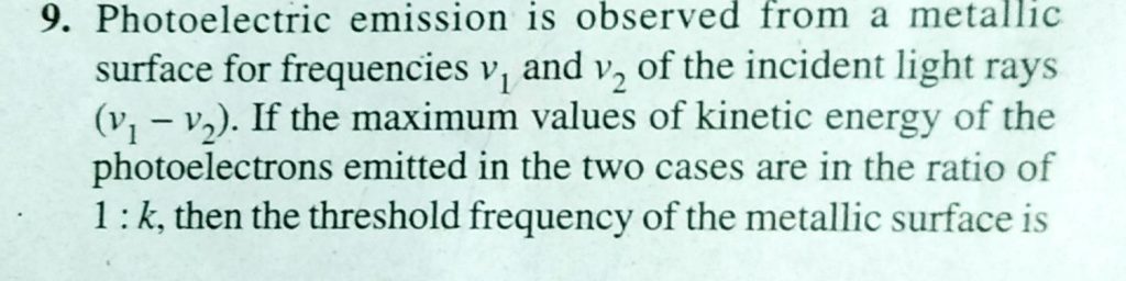 Photoelectric emission is observed from a surface for frequencies v1 and v2 of the incident radiation (v1>v2) . If the maximum kinetic energies of the photoelectrons in two cases are in ratio 1 : K then the threshold frequency v0 is given by. potassium sodium and lithium. The plots are parallel. Correct ranking of the targets according to their work function greatest first will be The figure shows different graphs between stopping potential (V0) and frequency (v) for photosensitive surface of cesium September 13, 2020 Category: Uncategorised (JEE Advanced Physics by BM Sharma + GMP Solutions) , Facebook Messenger WhatsApp Share this:TwitterFacebook Related