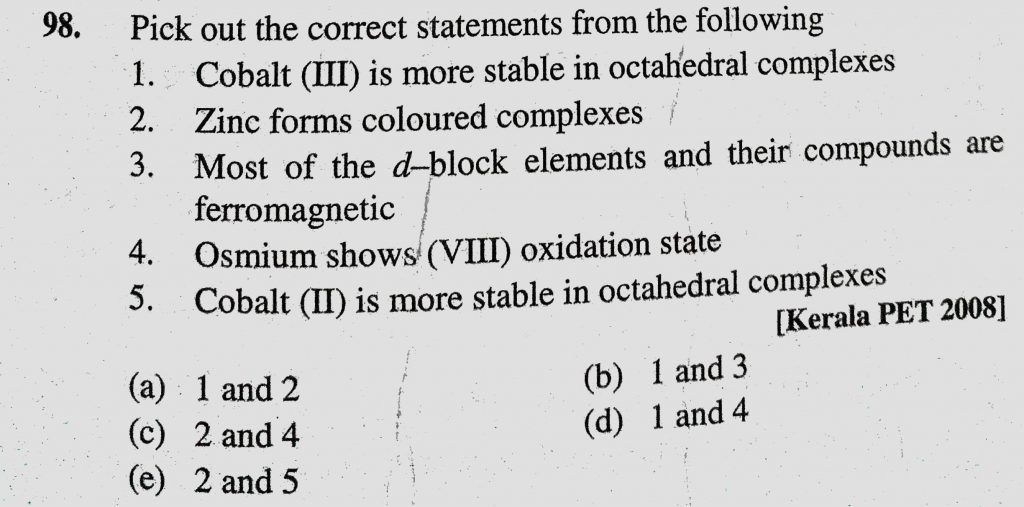 Pick out the correct statements from the following 1. Cobalt (III) is more stable in octahedral complexes 2. Zinc forms coloured complexes Pick out the correct statements from the following 1. Cobalt (III) is more stable in octahedral complexes 2. Zinc forms coloured complexes November 30, 2020 Category: Uncategorised (JEE Advanced Physics by BM Sharma + GMP Solutions) , Facebook Messenger WhatsApp Share this:TwitterFacebook Related