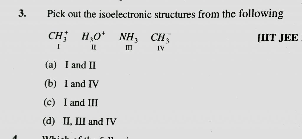 Pick out the isoelectronic structures from the following I CH3^+ II H3O^+ III NH3 IV CH3^- Pick out the isoelectronic structures from the following I CH3^+ II H3O^+ III NH3 IV CH3^- December 1, 2020 Category: Uncategorised (JEE Advanced Physics by BM Sharma + GMP Solutions) , Facebook Messenger WhatsApp Share this:TwitterFacebook Related
