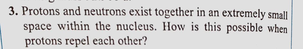 Protons and neutrons exist together in an extremely small space within the nucleus. How is this possible when protons repel each other ? Protons and neutrons exist together in an extremely small space within the nucleus. How is this possible when protons repel each other ? October 17, 2020 Category: Uncategorised (JEE Advanced Physics by BM Sharma + GMP Solutions) , Facebook Messenger WhatsApp Share this:TwitterFacebook Related
