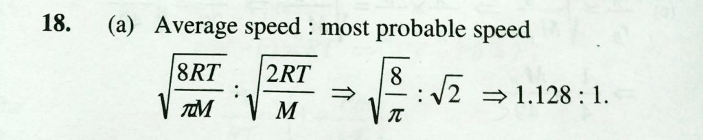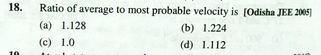 Ratio of average to most probable velocity is (a) 1.128 (b) 1.224 (c) 1.0 (d) 1.112 Ratio of average to most probable velocity is (a) 1.128 (b) 1.224 (c) 1.0 (d) 1.112 February 11, 2021 Category: Uncategorised (JEE Advanced Physics by BM Sharma + GMP Solutions) , Facebook Messenger WhatsApp Share this:TwitterFacebook Related
