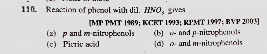 Reaction of phenol with dil. HNO3 gives (a) p and m-nitrophenols (b) o-and p-nitrophenols (c) Picric acid (d) o-and m-nitrophenols Reaction of phenol with dil. HNO3 gives (a) p and m-nitrophenols (b) o-and p-nitrophenols (c) Picric acid (d) o-and m-nitrophenols February 14, 2021 Category: Uncategorised (JEE Advanced Physics by BM Sharma + GMP Solutions) , Facebook Messenger WhatsApp Share this:TwitterFacebook Related