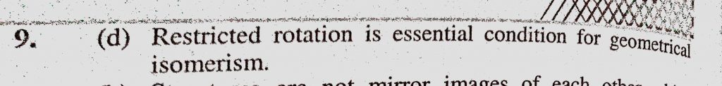 Reason for geometrical isomerism shown by 2-butene is (a) Chiral carbon (b) Free rotation about single bond Reason for geometrical isomerism shown by 2-butene is (a) Chiral carbon (b) Free rotation about single bond December 10, 2020 Category: Uncategorised (JEE Advanced Physics by BM Sharma + GMP Solutions) , Facebook Messenger WhatsApp Share this:TwitterFacebook Related