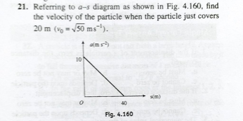 Referring to a-s diagram as shown in Fig. 4. 160, find the velocity of the particle when the particle just covers 20 m find the velocity of the particle when the particle just covers 20 m Referring t a-s diagram as shown in Fig. 4. 160 September 18, 2020 Category: Uncategorised (JEE Advanced Physics by BM Sharma + GMP Solutions) , Facebook Messenger WhatsApp Share this:TwitterFacebook Related