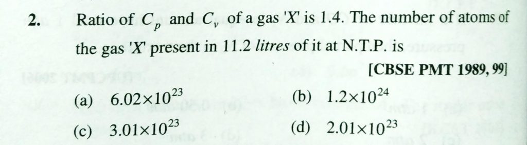 Rtaio of Cp and Cv of a gas ‘X’ is 1.4 . The number of atoms of gas ‘X’ present in 11.2 litres of it N.T.P. is Rtaio of Cp and Cv of a gas 'X' is 1.4 . The number of atoms of gas 'X' present in 11.2 litres of it N.T.P. is February 11, 2021 Category: Uncategorised (JEE Advanced Physics by BM Sharma + GMP Solutions) , Facebook Messenger WhatsApp Share this:TwitterFacebook Related